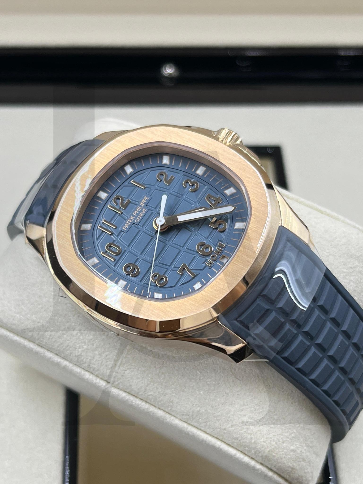 Model No. 5269R-001 Type Aquanaut Case Material Rose gold Case Diameter 38.8.mm Dial Color Blue Grey Strap Rubber Calibre Calibre E23-250 S FUS 24H Water Resistance 30M -