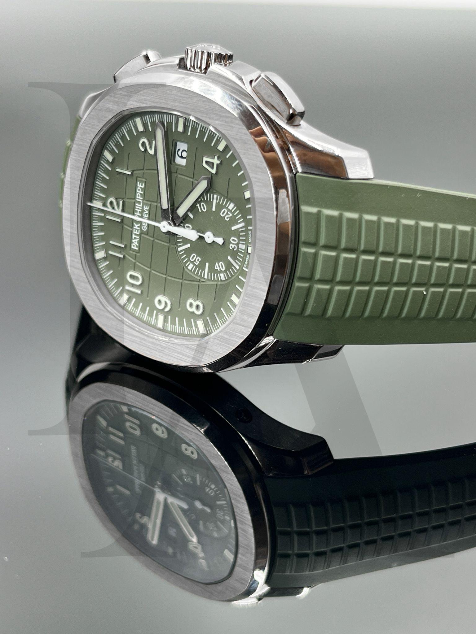 Model No. 5968g-010 Type Aquanaut Case Material White gold Case Diameter 42.2mm Dial Color Avocado Green Strap Rubber Calibre Calibre CH 28 - 520 C Water Resistance 30M -