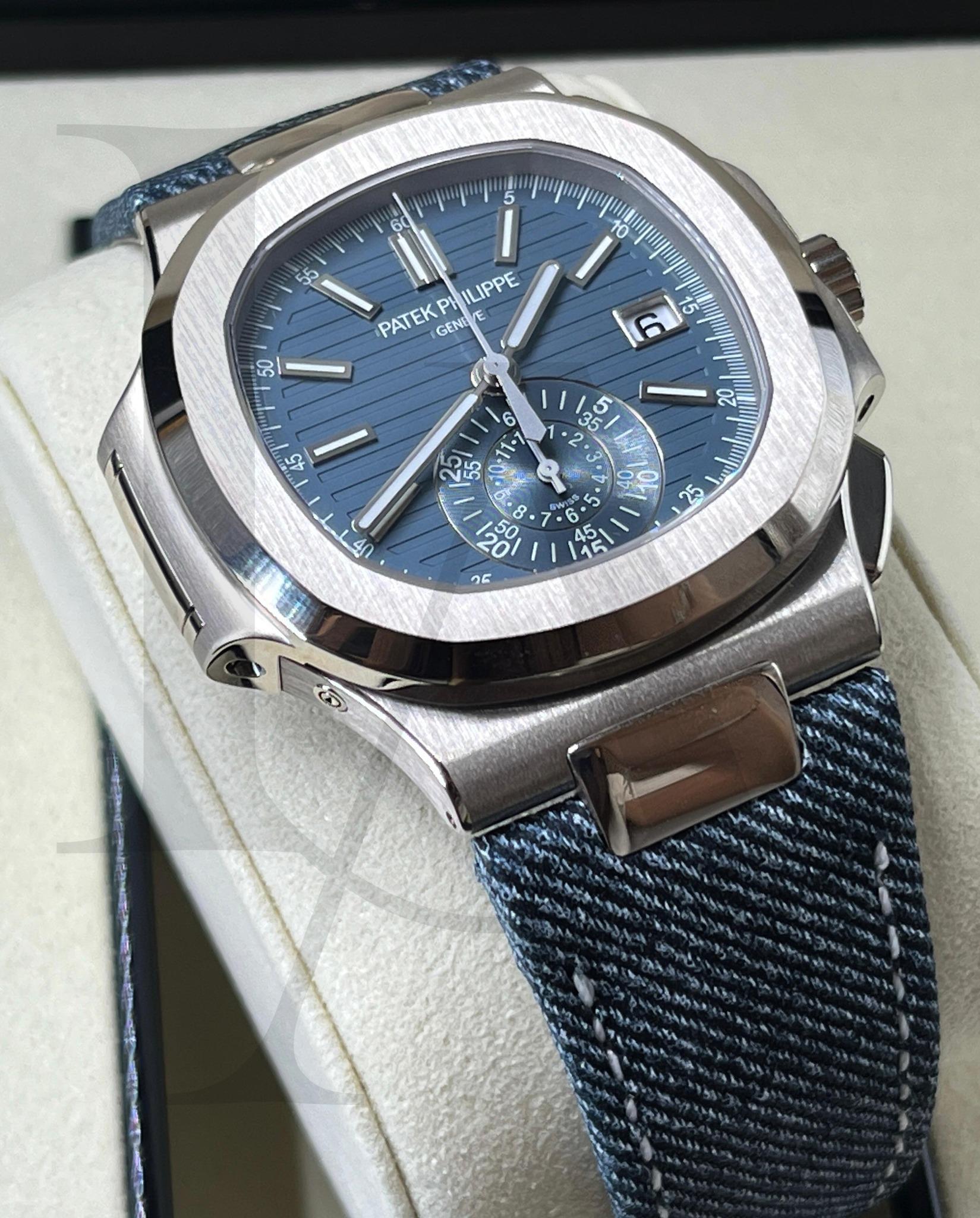 Model No. 5980/60G-001 Type NAUTILUS Case Material White gold Case Diameter 40.5mm Dial Color Blue Strap Calfskin Calibre Calibre CH 28-520 C Water Resistance 30M -
